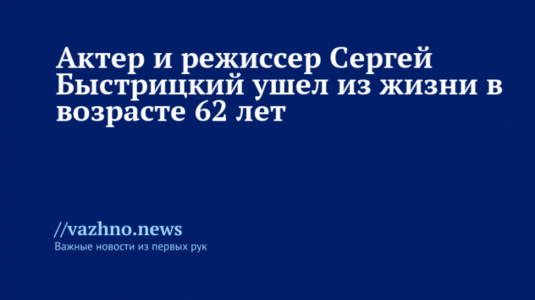 «1 апреля 2026 года на 63-м году жизни не стало нашего друга и коллеги – члена Союза кинематографистов России, актера, режиссера Быстрицкого Сергея Вениаминовича (1963-2026). Приносим соболезнования родным и близким», — указано в сообщении, опубликованном в Telegram-канале организации.
