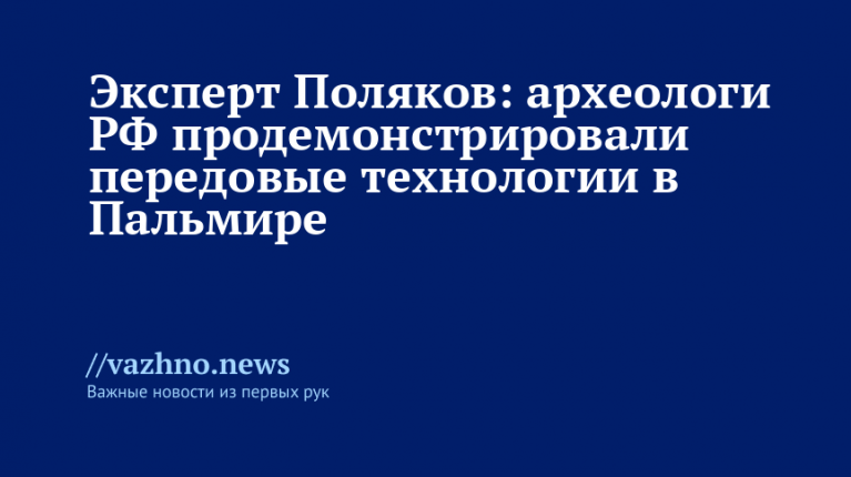 Работы российских специалистов в сирийской Пальмире подтвердили мировое лидерство отечественных методик трехмерной фиксации археологических памятников — их преобразования в цифровые модели. Такое заявление 2 апреля в беседе с журналистами сделал директор Института истории материальной культуры РАН, профессор Андрей Поляков.