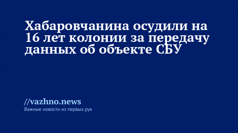Житель Хабаровска получил 16 лет заключения в колонии строгого режима за передачу информации об одном из городских объектов Службе безопасности Украины. О данном решении суда 3 апреля проинформировала прокуратура Хабаровского края.