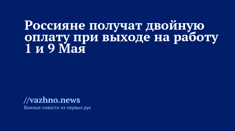 «Выход сотрудника на работу в праздник предполагает двойную ставку либо стандартную оплату с предоставлением дополнительного выходного. При сменном режиме работы 1 и 9 мая всегда относятся к праздничным и подлежат соответствующей оплате, вне зависимости от графика смен», — сообщила она ТАСС.
