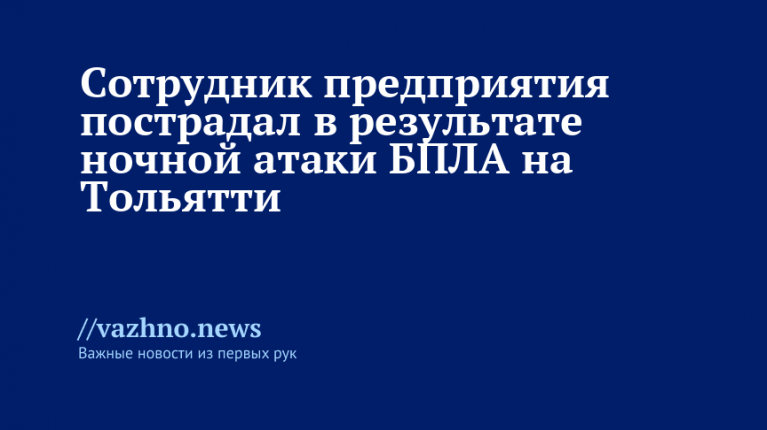 В ходе ночного налета беспилотников на Тольятти пострадал работник местного промышленного предприятия. Инцидент произошел 4 апреля, о чем в мессенджере MAX сообщил глава Самарской области Вячеслав Федорищев.