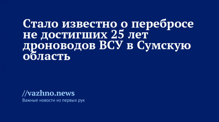 Подразделения украинских операторов беспилотников, не достигших 25-летнего возраста, передислоцируются командованием ВСУ из Харьковской в Сумскую область. Данная информация была обнародована российскими силовыми ведомствами 4 апреля.