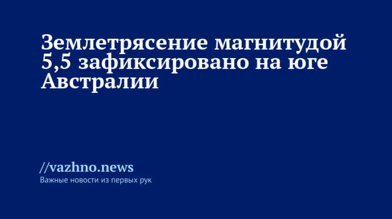 На юге Австралии зафиксировали сейсмический толчок магнитудой 5,5. Информация об этом появилась 4 апреля на портале Европейско-средиземноморского сейсмологического центра (EMSC).