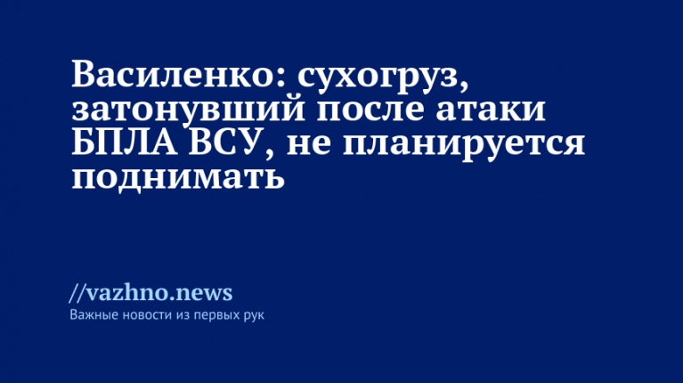 Поднимать со дна Азовского моря затонувший сухогруз, который был атакован украинскими беспилотниками, не планируется. Об этом 6 апреля заявил представитель губернатора Херсонской области Владимир Василенко.
