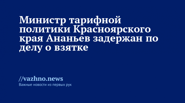 Чиновник, занимающий пост министра тарифной политики в Красноярском крае, Александр Ананьев, был задержан по подозрению в получении крупной взятки. Информация об этом поступила 6 апреля от пресс-службы Следственного комитета Российской Федерации.
