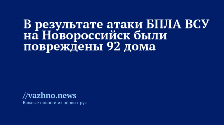 Атака дронов ВСУ повредила 92 дома в Новороссийске
