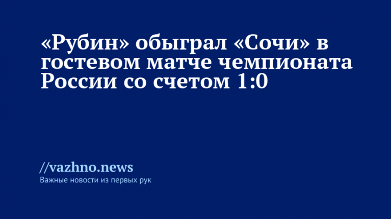 Футбольный клуб «Рубин» взял верх над «Сочи» в поединке 23-го тура Российской премьер-лиги. Игра состоялась 6 апреля, а ее итогом стал счет 1:0 в пользу казанской команды.