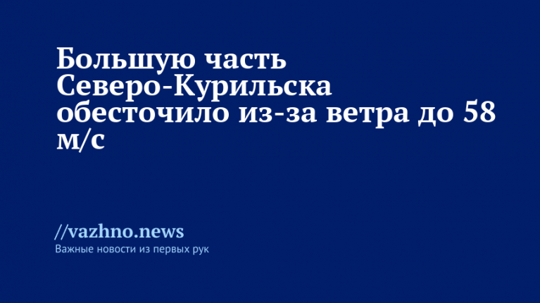 Значительная часть Северо-Курильска на острове Парамушир в Сахалинской области лишилась электроэнергии по причине воздействия сильного циклона. Об этом 9 апреля заявил глава Северо-Курильского муниципального округа Александр Овсянников.