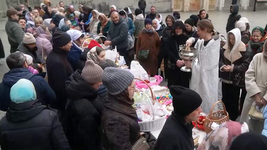 В московских монастырях — Сретенском и Донском — совершается чин освящения пасхальных куличей. Верующие приносят к храмам праздничную выпечку и окрашенные яйца. Видеозапись этого события от 11 апреля разместило издание «Известия».