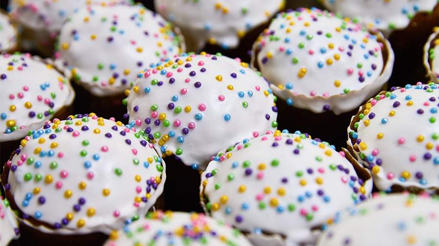 Создано «Известиями» Открытка на Светлый праздник ПасхуПасхальный стол традиционно возглавляют кулич и творожная пасха. Кулич считается домашним аналогом церковного артоса — квасного хлеба, освящаемого в храме. Творожная пасха обычно имеет форму усеченной пирамиды, символизирующей Гроб Господень.