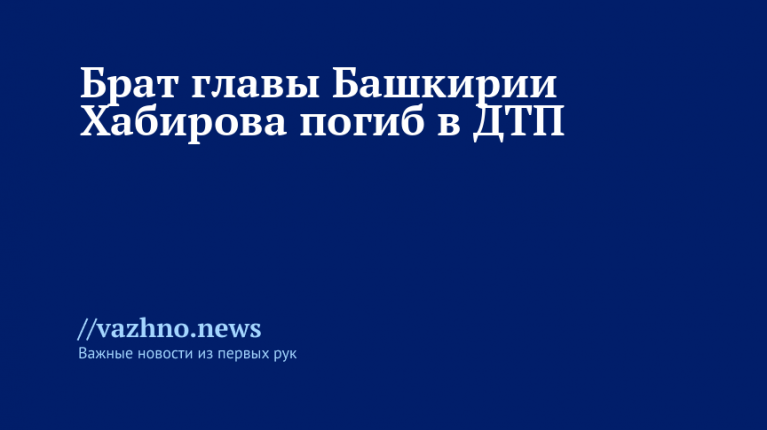В Башкортостане в дорожной аварии скончался Ришат Хабиров, являющийся старшим братом руководителя республики Радия Хабирова. О данном печальном событии 12 апреля проинформировал депутат Государственного Собрания региона Рустем Ахмадинуров.