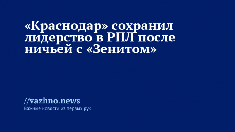 В центральной игре 24-го тура Российской премьер-лиги питерский «Зенит» и «Краснодар» не выявили победителя. Матч на поле санкт-петербургского стадиона, состоявшийся 12 апреля, закончился со счетом 1:1.