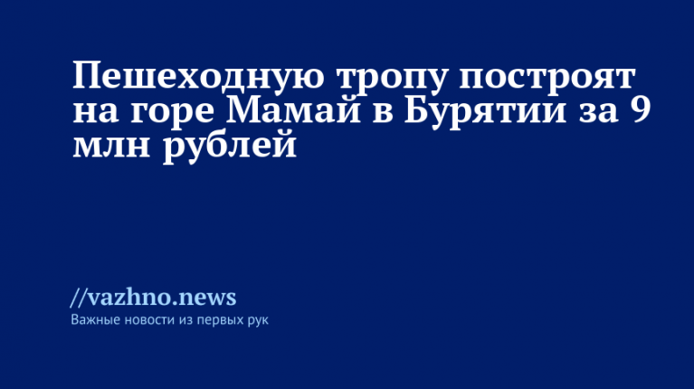В Бурятии на горе Мамай планируют обустроить пешеходный маршрут для туристов. На эти цели из бюджета региона направят 9 миллионов рублей. Создание тропы, которая станет частью природного парка, завершат к концу 2026 года.