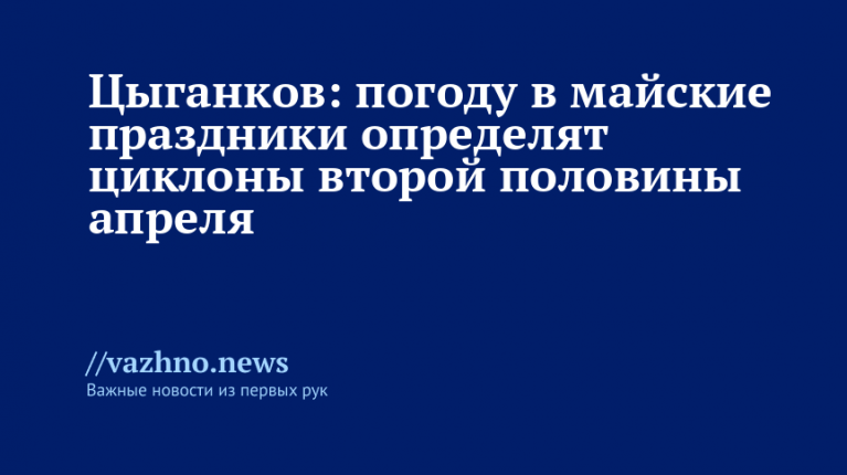«По теории, циклон живет семь дней, но какой именно будет определять погоду, например, 1 мая, пока не известно. Даже существующим моделям пока нечего рассчитывать, поскольку еще не сформировались те объекты, которые будут задавать характер осадков и температурных колебаний в начале месяца. Эти циклоны начнут зарождаться только 22–23 апреля, поэтому официальный прогноз на майские праздники появится не раньше 24 апреля», — заявил он «Известиям».