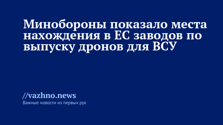 В государствах Европейского союза размещается 21 предприятие, производящее беспилотные летательные аппараты и комплектующие для Украины. Карту, на которой отмечены эти европейские производства, обнародовало российское Министерство обороны 15 апреля.