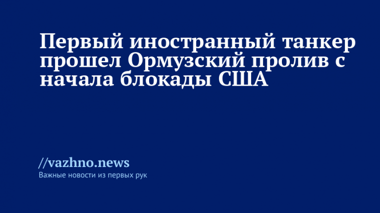 «Супертанкер Agios Fanourios, зарегистрированный на Мальте, оказался первым нефтеналивным судном, которое проследовало в западном направлении через Ормузский пролив с момента установления США блокады иранских портов», — сообщается в публикации Marine Traffic в социальной сети X (ранее известной как Twitter).
