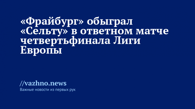 В ответной встрече 1/4 финала Лиги Европы немецкий «Фрайбург» одержал победу над испанской «Сельтой» со счетом 3:1. Игра состоялась 16 апреля в Виго на арене «Абанка Балаидос».