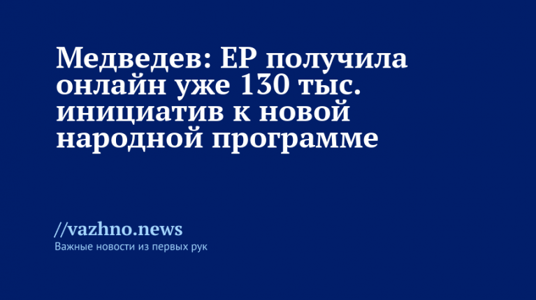 Около 130 тысяч инициатив, предложенных для формирования новой народной программы, были систематизированы в пять тематических разделов. Наибольшее количество — 44 тысячи предложений — вошло в блок под названием «Устройство самой большой страны в мире», затрагивающий вопросы здравоохранения, образования, жилищно-коммунального хозяйства, экологии и создания доступной среды. Данная информация была озвучена 16 апреля председателем партии «Единая Россия», заместителем председателя Совета Безопасности РФ Дмитрием Медведевым в ходе заседания Экспертного совета.