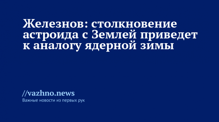 Столкновение нашей планеты с крупным космическим телом способно спровоцировать катастрофу планетарного масштаба, сопоставимую с последствиями ядерной зимы. Такое мнение 18 апреля высказал старший научный сотрудник Института прикладной астрономии Российской академии наук Николай Железнов.
