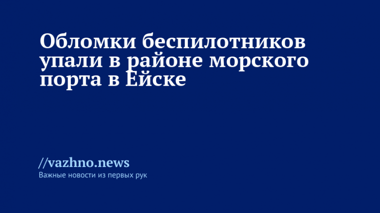 «В районе морского порта Ейска произошло падение обломков беспилотника», — сообщается в официальном Telegram-канале штаба.
