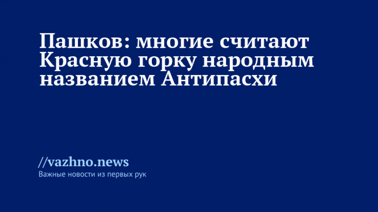 Он уточнил, что Красная горка — это народное гулянье с катанием яиц, свадебными обрядами, играми и обычаем поздравления тещ и свекровей. Антипасха же, по словам Пашкова, представляет собой церковное празднование — особое воспоминание, совершаемое спустя неделю после Пасхи. Следовательно, эксперт делает вывод о том, что речь идет о двух отдельных праздниках: религиозном и светском.