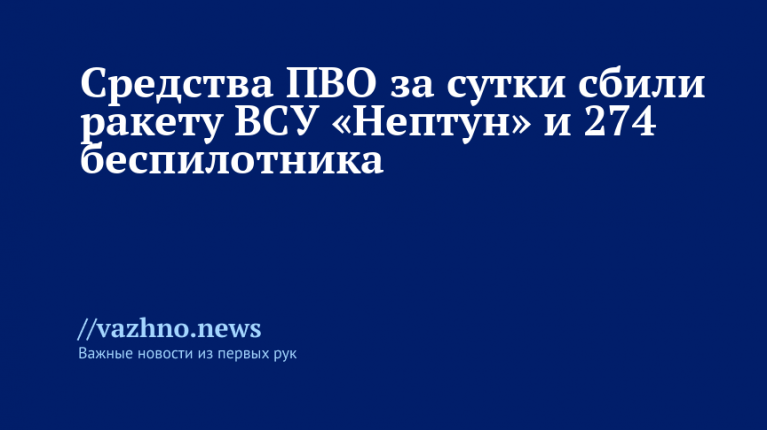 Сбиты "Нептун" и 274 дрона за сутки