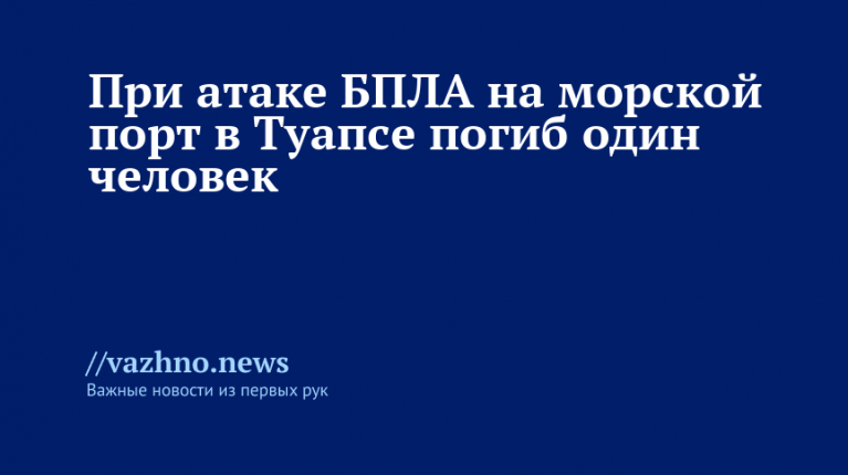 В результате удара беспилотных летательных аппаратов по портовой инфраструктуре Туапсе зафиксирована гибель человека. Об этом 20 апреля проинформировал в своем Telegram-канале глава Краснодарского края Вениамин Кондратьев.