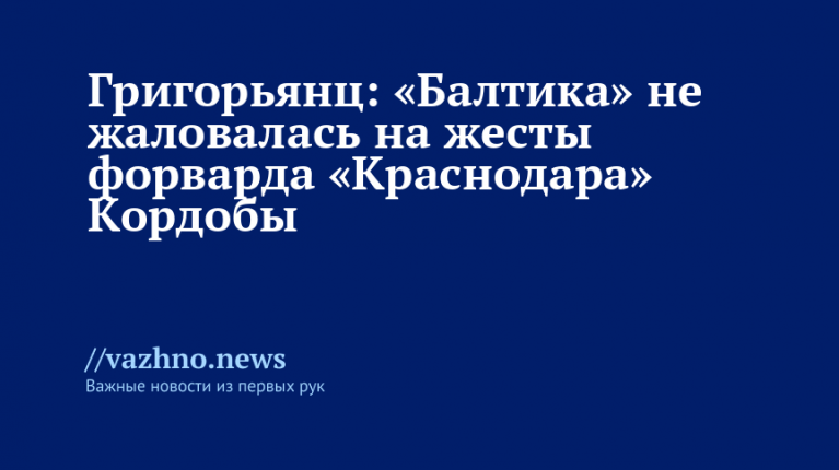 Футбольный клуб «Балтика» из Калининграда не направлял жалобу в контрольно-дисциплинарный комитет РФС относительно действий форварда «Краснодара» Джона Кордобы в завершающие моменты матча российской премьер-лиги. Такое заявление 20 апреля сделал председатель комитета Артур Григорьянц.