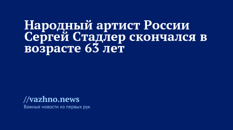 На 64-м году жизни скончался народный артист России, скрипач и дирижер Сергей Стадлер. Соответствующее сообщение 20 апреля распространил губернатор Санкт-Петербурга Александр Беглов.