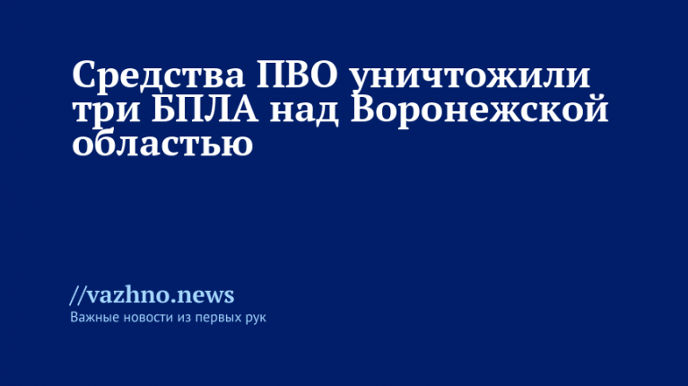 «В течение прошедшей ночи дежурными подразделениями ПВО и средствами РЭБ над территорией одного из районов Воронежской области были выявлены и нейтрализованы три беспилотных летательных аппарата», — указал он в публикации своего Telegram-канала.