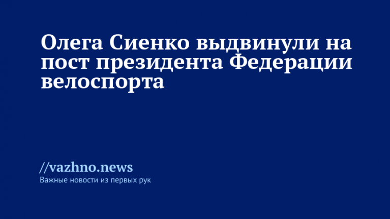 Кандидатура бизнесмена Олега Сиенко предложена на должность главы Федерации велосипедного спорта России. Соответствующее заявление 21 апреля сделал министр спорта Российской Федерации Михаил Дегтярев.