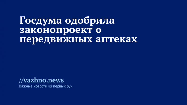 Госдума приняла во втором и третьем чтениях законопроект, предусматривающий организацию мобильных аптечных пунктов для улучшения снабжения населения медикаментами. Соответствующая информация была размещена 21 апреля на официальном портале нижней палаты парламента.