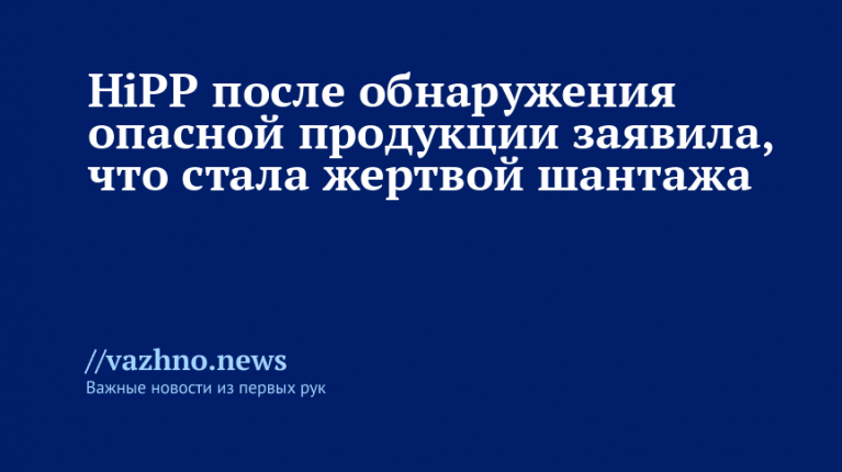 Производитель HiPP сообщил изданию "Известия" 21 апреля, что компания подверглась попыткам шантажа и рыночным манипуляциям на фоне информации об обнаружении крысиного яда в ее товарах.