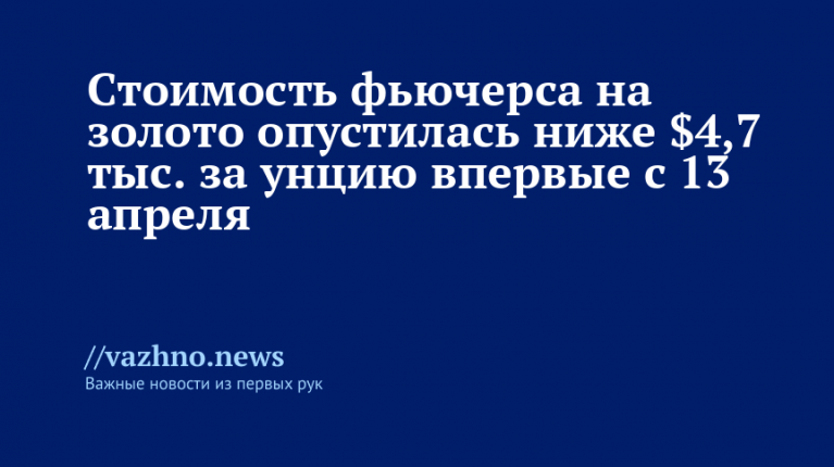 Цена на фьючерсный контракт по золоту с расчетами в июне 2026 года впервые с 13 апреля этого же года упала ниже отметки в 4700 долларов за тройскую унцию. Об этом 21 апреля сообщается в информации с торговой платформы Comex.