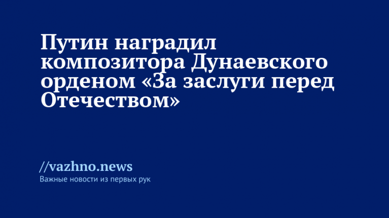 Российский президент Владимир Путин подписал указ о награждении композитора Максима Дунаевского орденом «За заслуги перед Отечеством» IV степени. Данная информация, основанная на тексте указа, была опубликована 21 апреля на портале правовой информации.