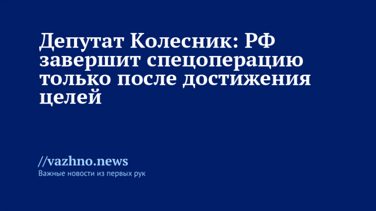 Как указал депутат, первостепенное значение сегодня имеют два аспекта: сохранение жизни военнослужащих и выполнение намеченных главой государства ориентиров. Колесник разъяснил, что боевые действия будут свернуты только после того, как указанные цели реализуют, а президент решит, что условия благоприятны для государства.