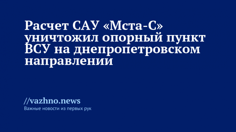 Согласно сообщению, после получения целеуказания расчет САУ «Мста-С» выполнил подготовку орудия к стрельбе, осуществил наведение и нанес серию точных ударов. Вследствие огневого поражения указанная позиция противника была полностью разрушена вместе с находившимся там личным составом. Результаты поражения зафиксированы средствами объективного контроля.
