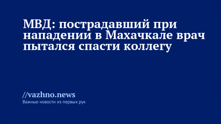 Один из врачей, на которых было совершено нападение в больнице Махачкалы, получил ножевое ранение, поскольку пытался спасти коллегу. Об этом 23 апреля сообщили в пресс-службе МВД России по Дагестану.