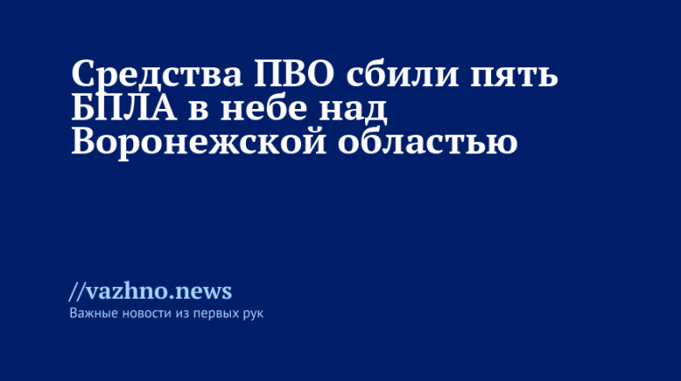 Силами противовоздушной обороны (ПВО) в небе над Воронежской областью были сбиты пять беспилотных летательных аппаратов (БПЛА) Вооруженных сил Украины (ВСУ). Об этом 25 апреля сообщил губернатор области Александр Гусев.