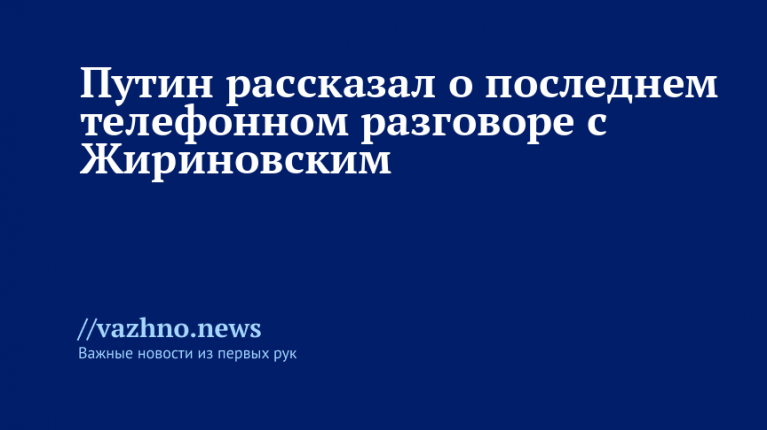 Президент России Владимир Путин в документальном фильме телеканала «Россия 1» «Владимир Жириновский» рассказал подробности своего последнего телефонного разговора с основателем ЛДПР, который скончался в 2022 году.