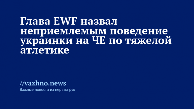 Президент Европейской федерации тяжелой атлетики (EWF) Астрит Хассани отреагировал на решение украинской спортсменки Ирины Домбровской отказаться от совместного снимка с россиянкой Варварой Кузьминовой на чемпионате Европы в Батуми. Глава организации провел встречу со штангисткой и назвал ее действия неприемлемыми. Об этом 25 апреля сообщает ТАСС.