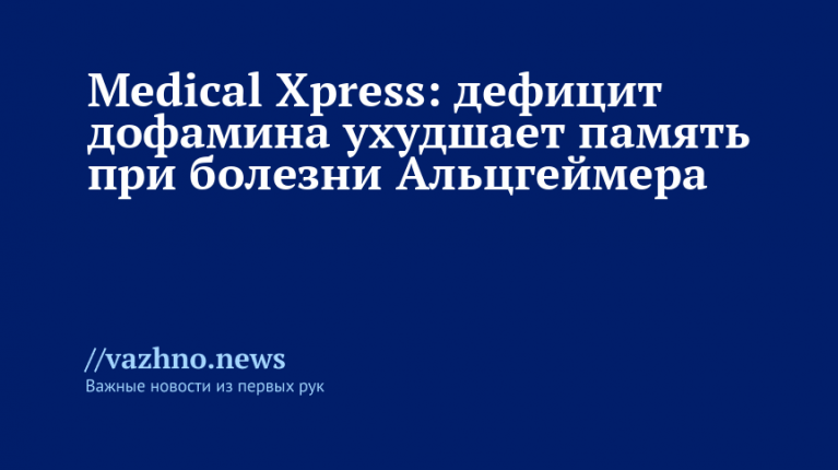 В ходе экспериментов на моделях мышей с аналогом болезни Альцгеймера выяснилось, что уровень дофамина в критически важной для памяти области мозга снизился более чем в пять раз по сравнению с нормой. Из-за этого нейроны перестали адекватно реагировать на внешние стимулы.