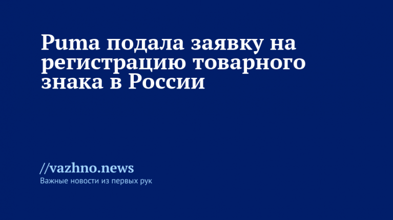 Бренд планирует зарегистрировать знак для спортивной одежды, сумок и защитной экипировки. В 2022 году Puma приостановила продажи на российском рынке.