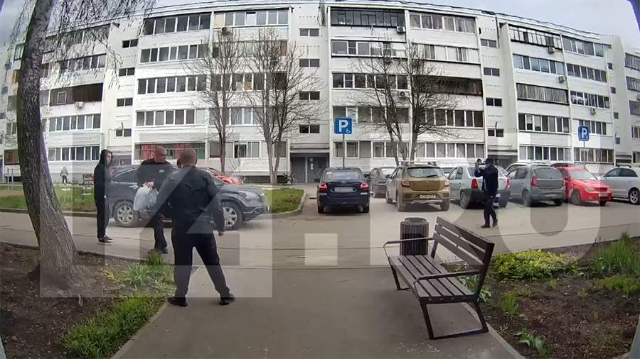 На кадрах видно, как мужчина во время нападения спрятался за машиной и выбежал на нападавшего, когда у того кончились патроны. Жена в панике убежала в ближайший подъезд и просила жильцов открыть ей дверь.