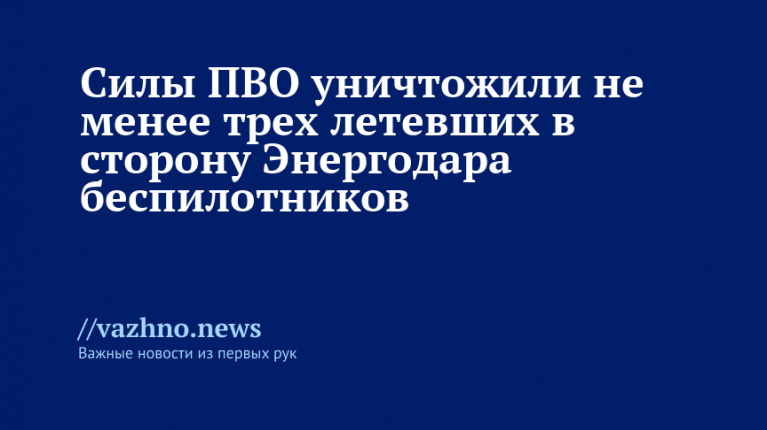 «Сегодня ночью ПВО России уничтожила и подавила не менее трех БПЛА, которые безуспешно пытались атаковать главный город энергетиков Запорожской области», — говорится в его сообщении в Telegram-канале.