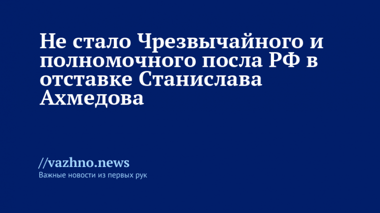 «Руководство Министерства иностранных дел РФ и департамент государств Африки (Южнее Сахары) с глубоким прискорбием извещают, что 27 апреля 2026 года скоропостижно скончался Чрезвычайный и полномочный посол РФ в отставке Ахмедов Станислав Анварович», — говорится на сайте дипведомства.