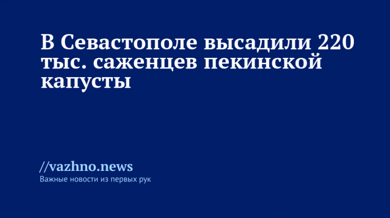 Более 220 тыс. саженцев пекинской капусты сортов «Табалуга» и «Натсуки» высадили на полях Севастополя. Площадь посадок превысила 2 га, сообщает пресс-служба регионального правительства.
