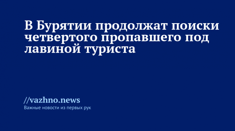 Поиски четвертого туриста, который пропал 24 апреля после схода лавины в горах Бурятии, продолжатся до его обнаружения. Об этом сообщил 29 апреля Дмитрий Печкин — адвокат турфирмы «Горизонт», сотрудники которой участвуют в поисках.