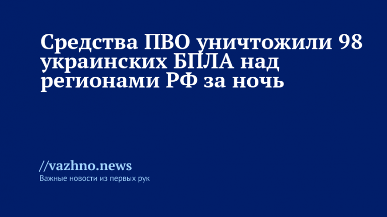 Средства ПВО уничтожили 98 украинских БПЛА над регионами РФ за ночь