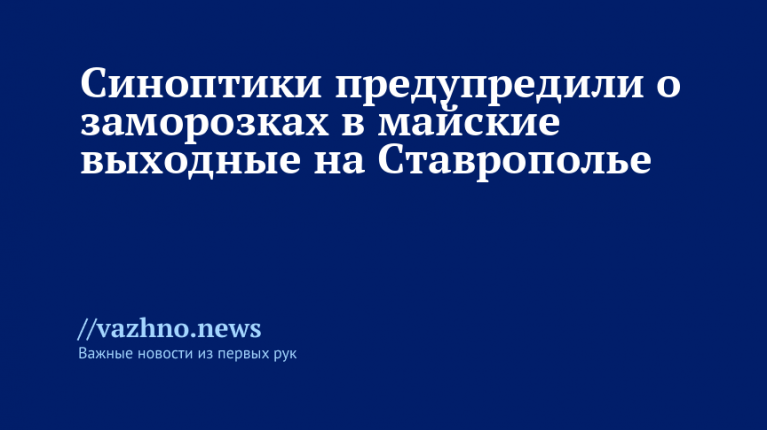 В ночные и утренние часы 1–3 мая столбики термометров покажут от минус одного до минус трех градусов. Информация размещена на портале ИА StavropolMedia.
